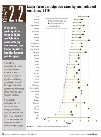 下面是美国统计局做的35个主要国家,男女就业比例统计图。(注5)