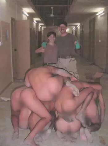 他们变着花样虐待囚犯。囚犯不仅受到体罚和拷打;穆斯林囚犯还被光着身子,头被套上女性内裤;面对女看守,被逼集体手淫;脖子被套上狗的项链,被牵着在地下爬行;有的阴茎还被电线绑上;有的被强奸和鸡奸…..