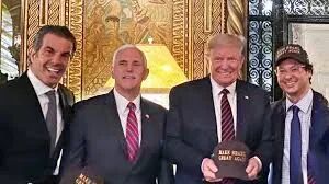 3月12日,巴西政府新闻官被确诊新冠。他在上周末,随巴西总统访美时,不但跟特朗普握了手,合了影,还一起吃了饭。(新闻官就是右边戴帽子那个)