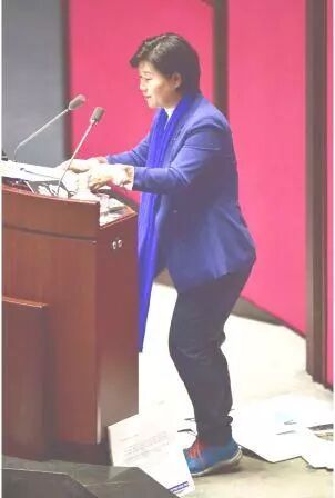 后来有个女议员效仿他,讲话那天特意穿裙子;解手时,工作人员拿来一个垃圾桶,用布帘子给她挡着;她不离开讲台,就方便了。(注5)