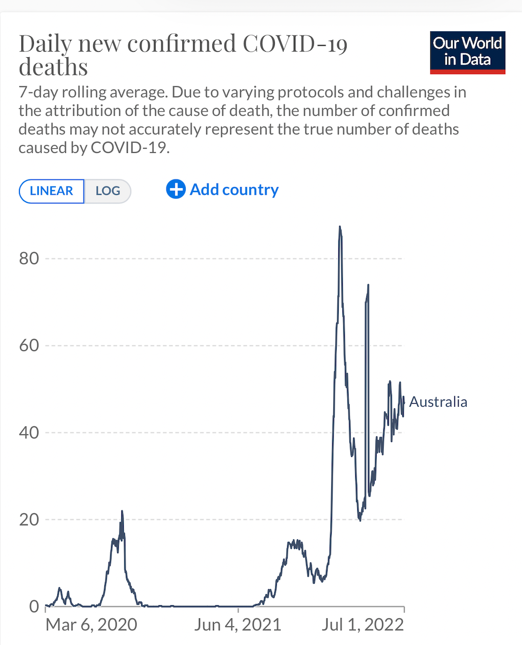 澳洲目前90%人打了疫苗,但过去6个月新冠每天死亡人数创历史新高!请看下图。