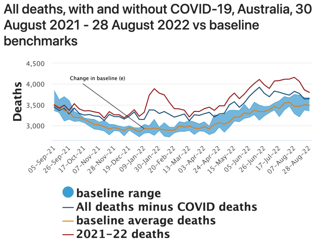 该文说,根据澳洲保险精算师协会计算,2022年1—8月澳洲超正常死亡人口15.400人——比正常水平多死了13%。